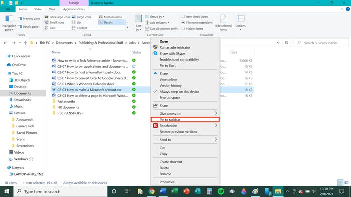 Вы также можете закрепить файлы на панели задач Windows. Однако это требует на несколько шагов больше, чем закрепление прамм, потому что вам нужно немного манипулировать программированием Windows.