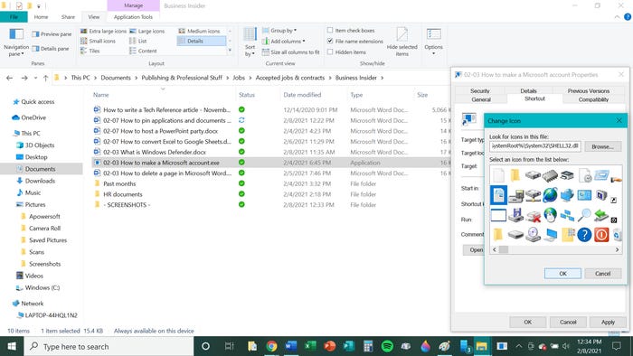 7. Щелкните «Изменить значок» и щелкните значок, который вы хотите представить документу на панели задач. После того, как вы выбрали, нажмите «ОК» в окне «Сменить значок».